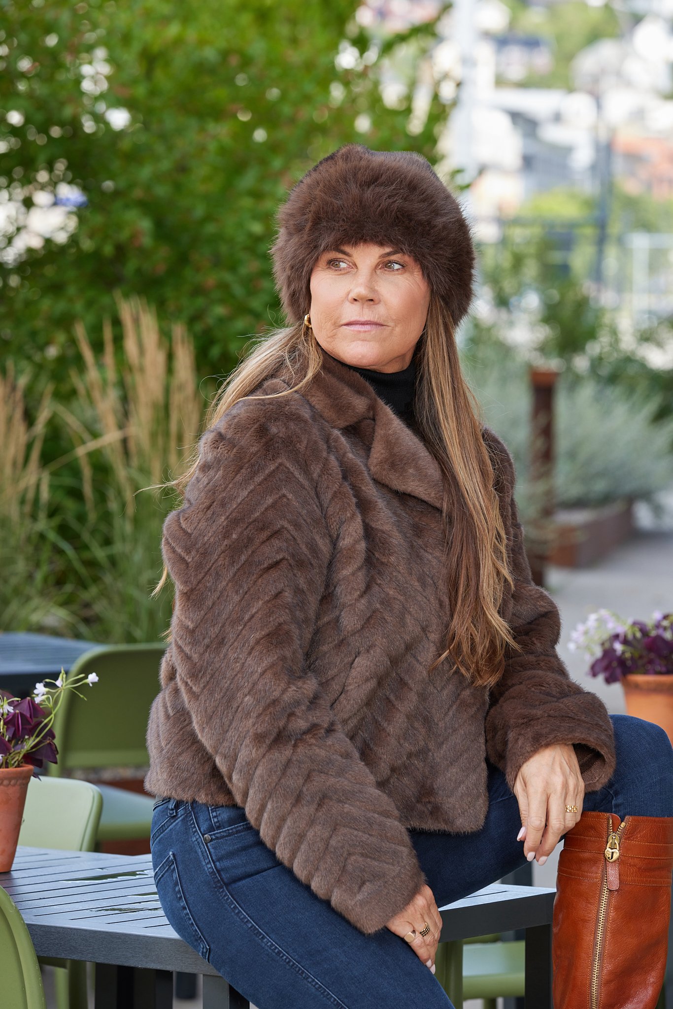 Noma`s nye lekre jakke i fin skåret fuskepels. Jakken har lommer, og exclusive hemper foran med dekorative stener. Denne er one size, kort og rett i fasongen. Passer flere str, da man lett kan flytte festet til hempene hvis man behøver det.