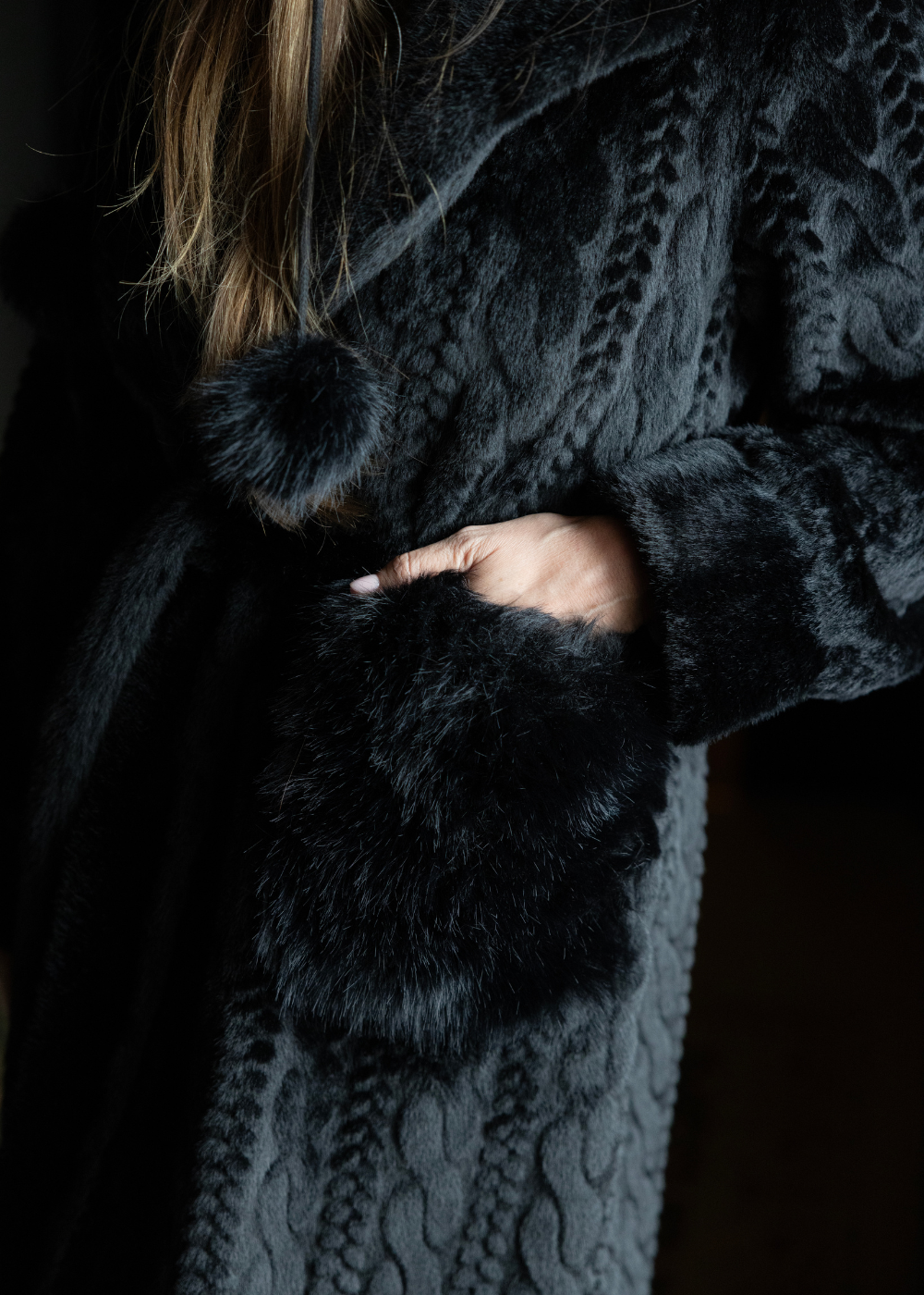 Aspen kåpe er den perfekte jakken for deg som liker lekre detaljer og en klassisk stil. Med “cable knit” detaljer og fluffy lommer er dette det perfekte tilskuddet til garderoben. Et rett utsnitt som kan strammes med beltet i livet.