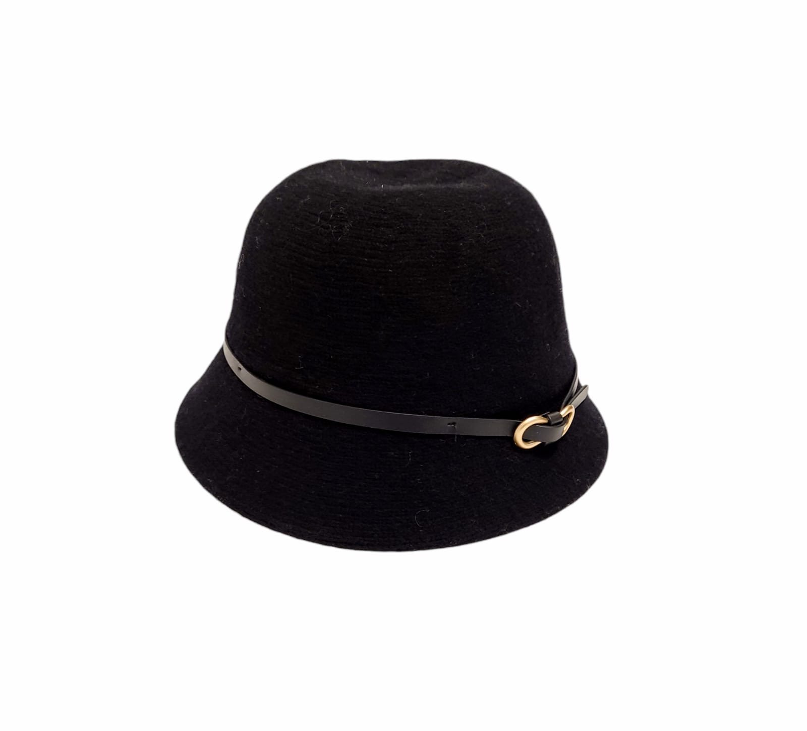 Bøttehatt i 100% ull med en lenke i leatherlook for å fullføre looken.