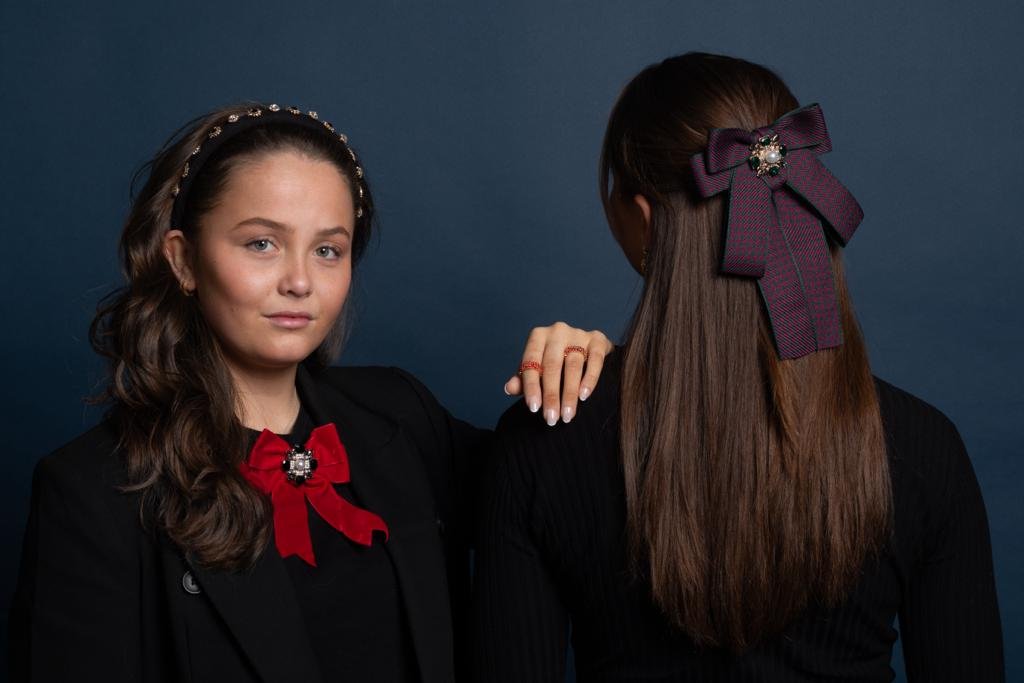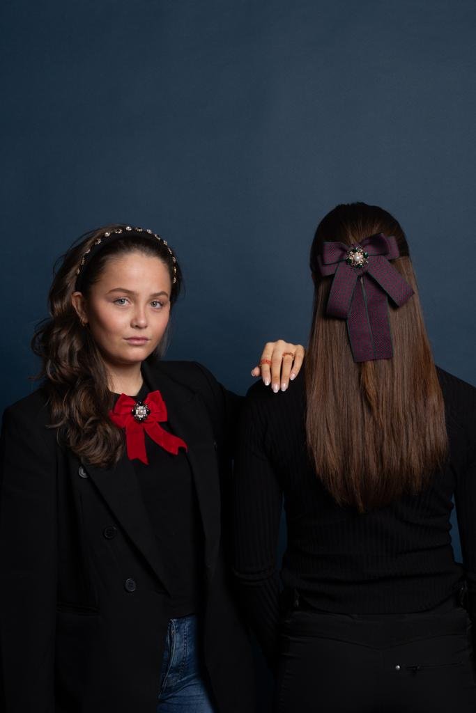 Lekre sløyfer med nydelig dekor. Fine både i halsen på skjorten, og på dressjakken. En liten klype bak i tillegg gjør at den også kan festes i hestehalen.