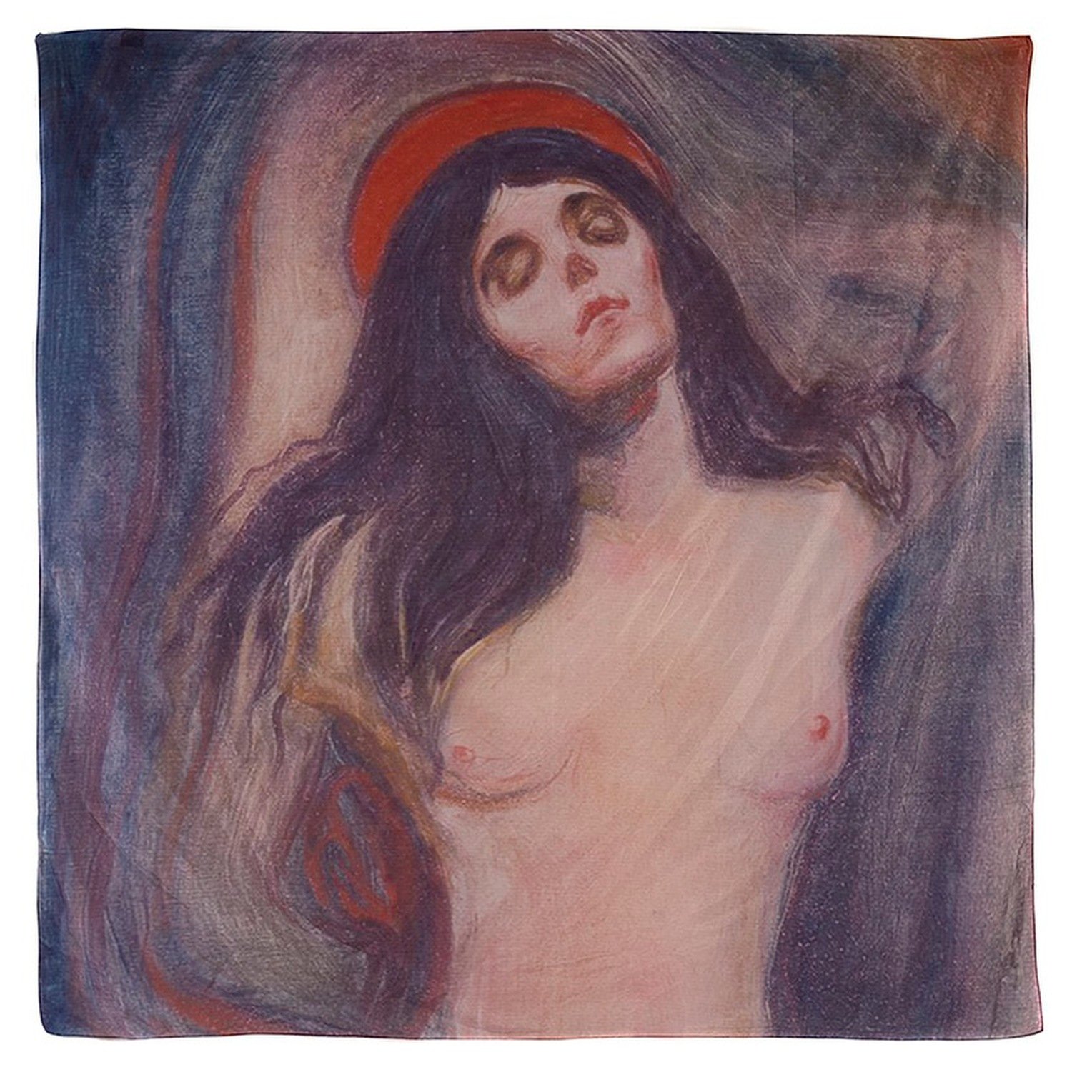 Nydelige skjerf med noen av Edvard Munch`s mest kjente motiver, i en herlig blanding av 10% silke, 40% bomull og 50% viskose. Kan også brukes som sjal. Dette er supre gaver til den som har alt. Skjerfet legges i et fint gave etui.
