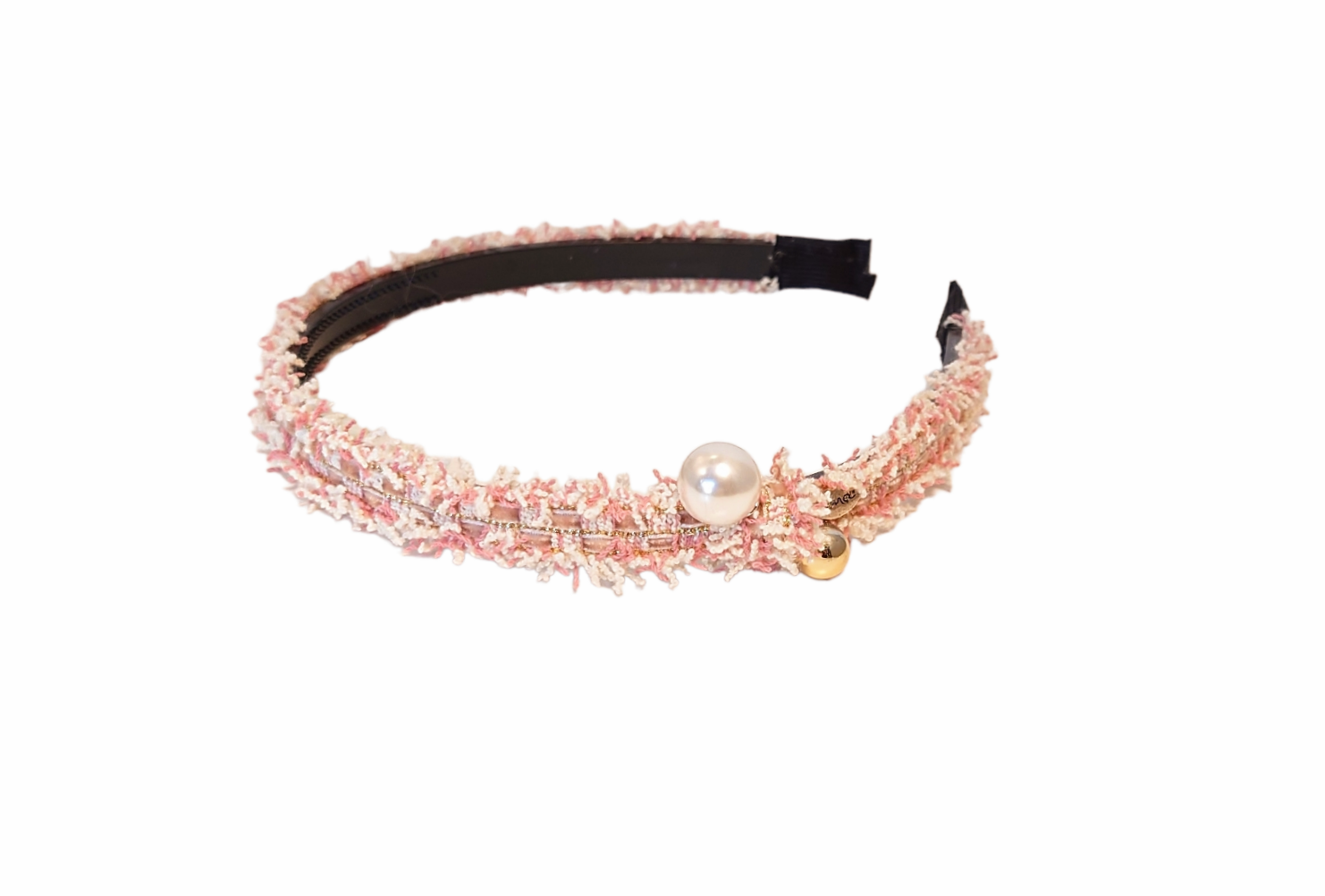 Lekre bouclè hårbøyler med perler i creme og gull. Behagelige å ha på, og med små tenner på innsiden av bøylen som gjør at den sitter godt.