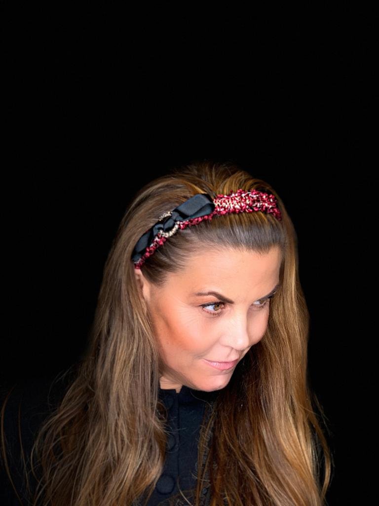 Home > NYHETER > Hårbøyle bouclè med sløyfe og stener