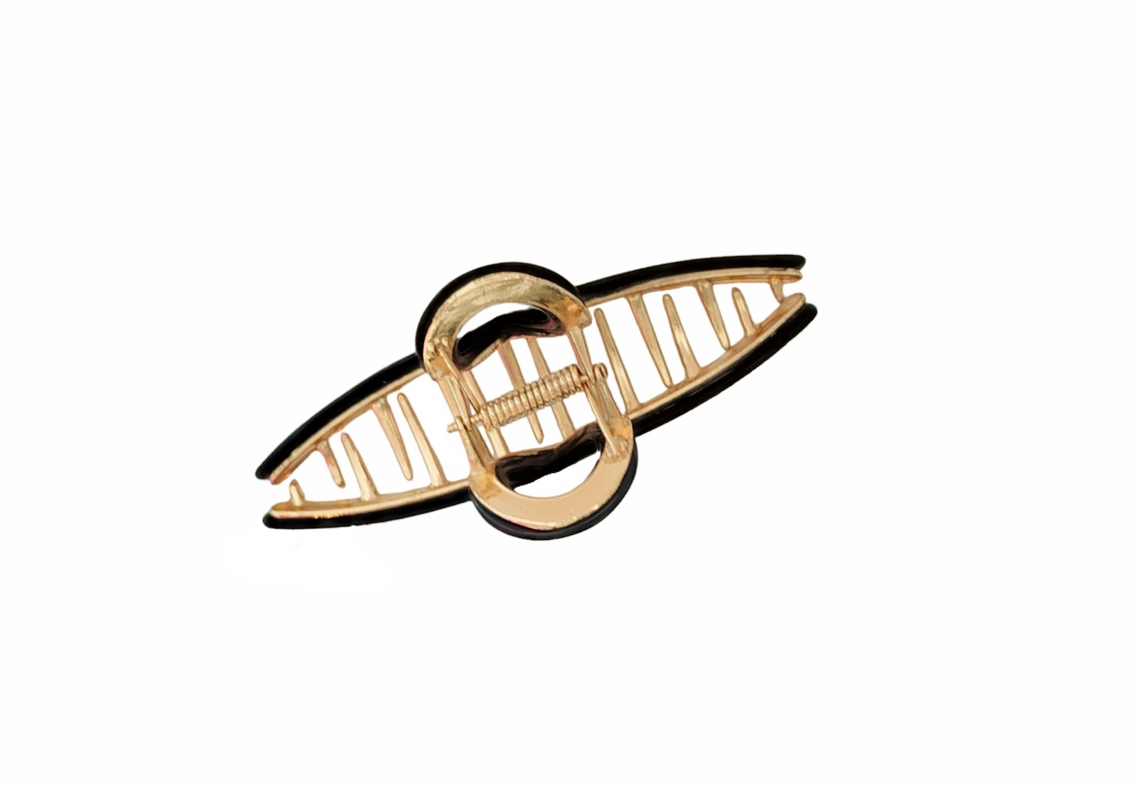 Lekre avlange hårklyper i gullfarget metall. Sitter godt i håret. Materialet oppå metallet er laget av cellulose acetate, som er meget slitesterkt.