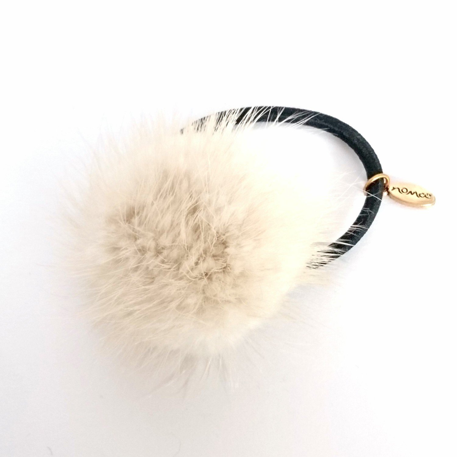 Søte hårstrikker med kaninpels. Ingen bytterett på outletvarer.