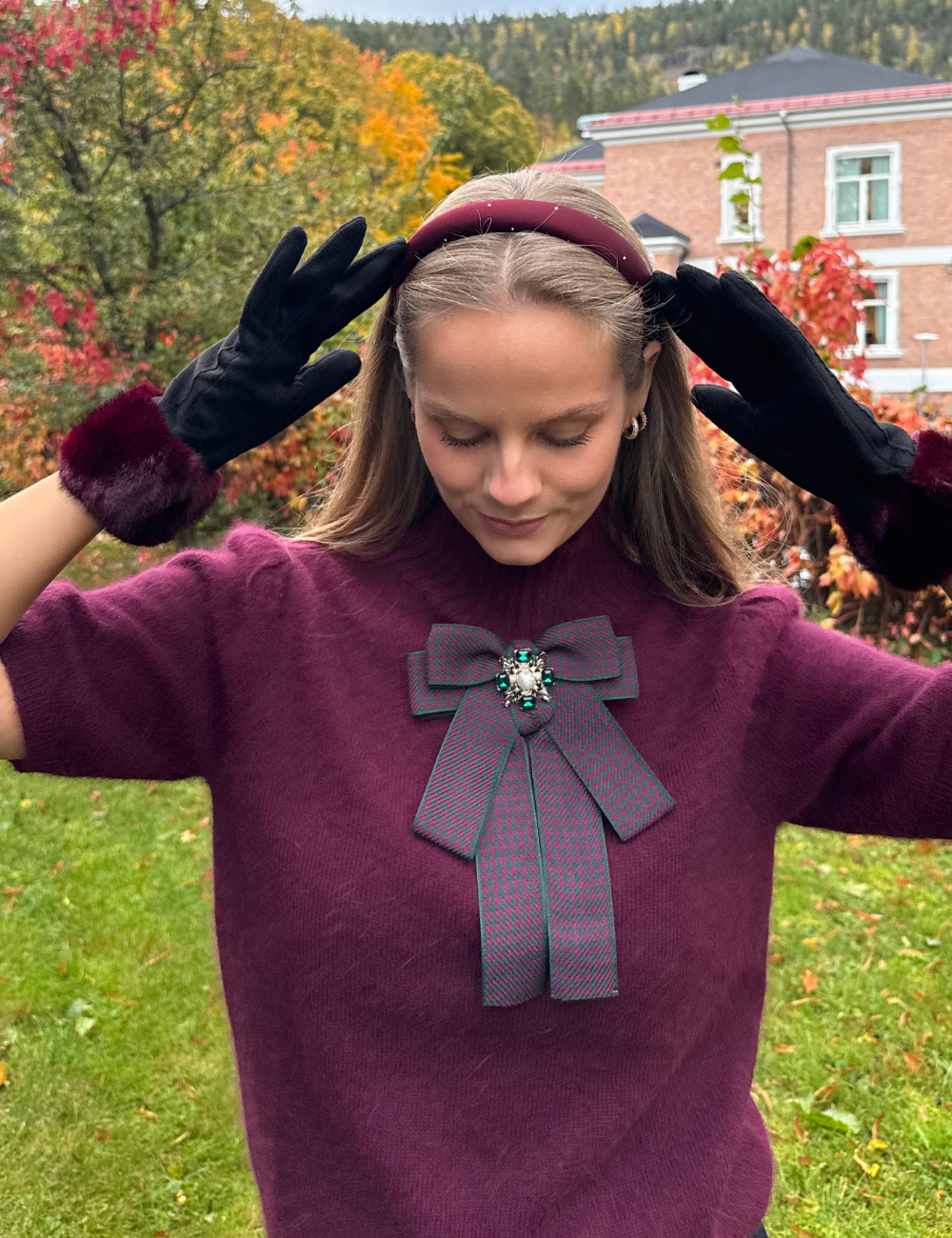 Søt og enkel hårbøyle i silkelook med små studs. Denne er perfekt til hverdags eller til en fest der man ønsker å ha litt mer til antrekket!