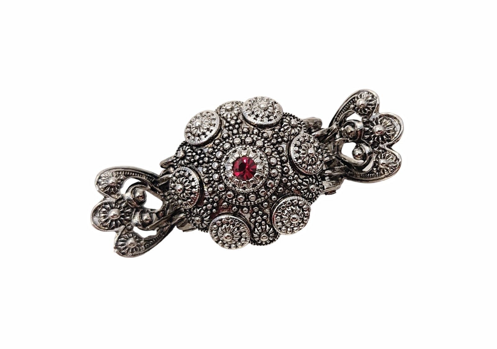 Noma`s egendesignede dekorative hårklyper i nikkelfritt sterkt stål, med en farget sten i midten. Designet for å passe våre nydelige bunader, stakker og festdrakter. Bunadshårklypene sitter utrolig godt i håret, og er enkle å bruke.