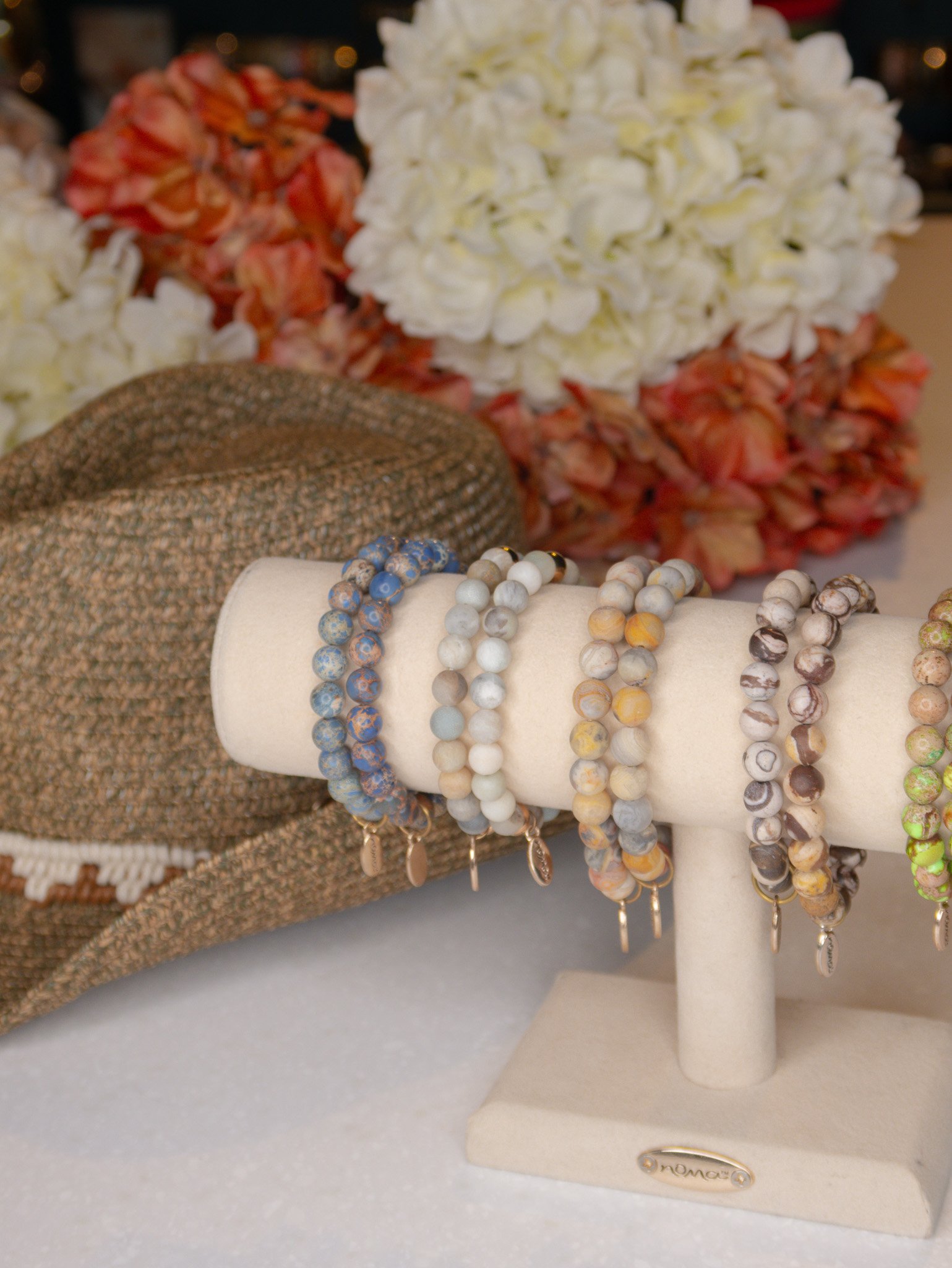 Lekre håndlagde Rock Beads armbånd laget i Kenya. One size, men med en tøyelig og solid strikk. Leveres i en lekker velur gavepose.