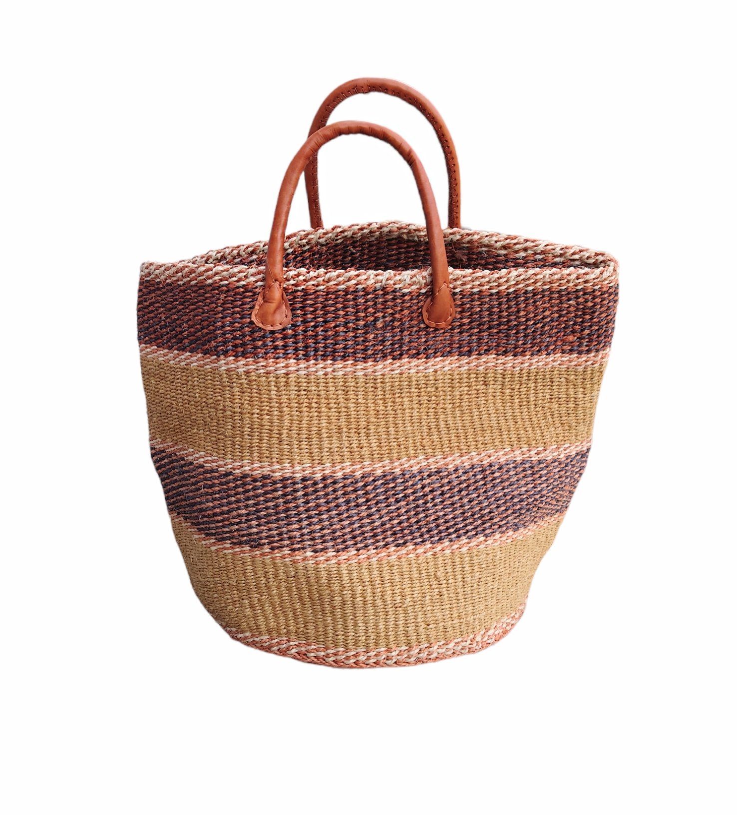 Nydelige sisal kurver i god kvalitet. Kurvene er håndlagde av kvinner i Kenya. Disse damene har ansvaret for hus, barn og jordbruk i tillegg,  så inntekten de får fra disse kurvene er noe de virkelig verdsetter. Siden de er håndlagde kan fargene være litt forskjellige, men vil ikke avvike veldig mye. Hankene er i slitesterkt geiteskinn.